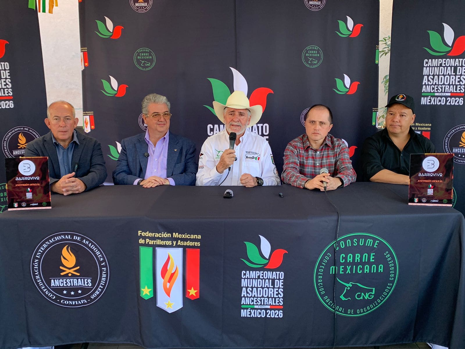 El presidente de la FMPA, Coronel Sicarios, presentó los detalles del Campeonato Mundial de Asadores Ancestrales México, resaltando la presencia de 16 países participantes en las categorías de proteína animal: res, puerco, pollo y pescado, exponiendo que se hizo una innovación para esta edición que es incluir picaña de búfalo y cabrito norteño.