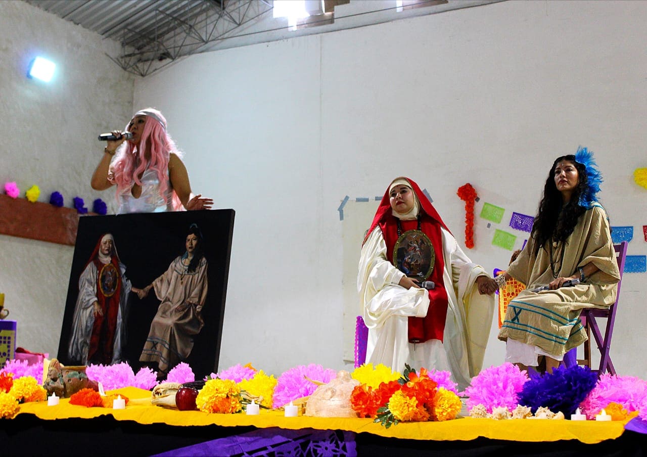 de Día de Muertos se encuentran Malintzin y Sor Juana, quienes guiadas por un diálogo de tres, con la fundadora Eva (¿o